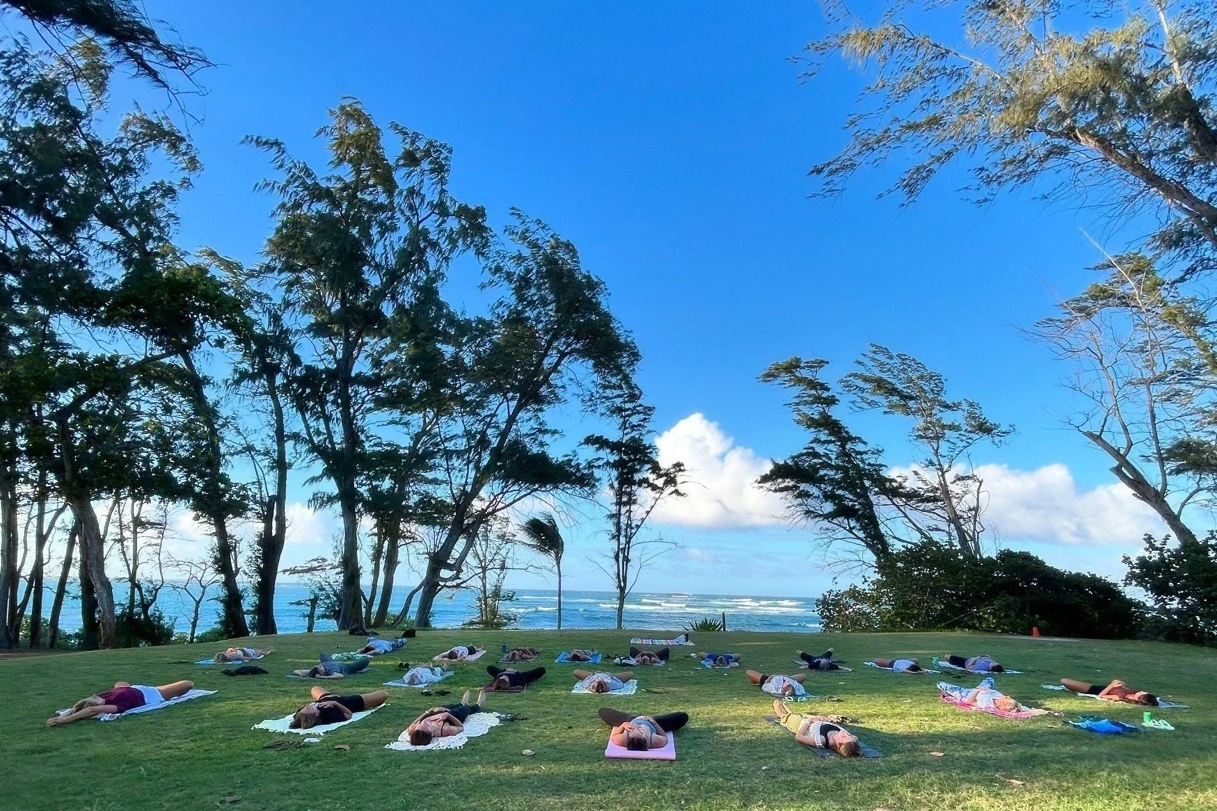 Stretch with us on the Beautiful North Shore of Oahu, Hawaii.
